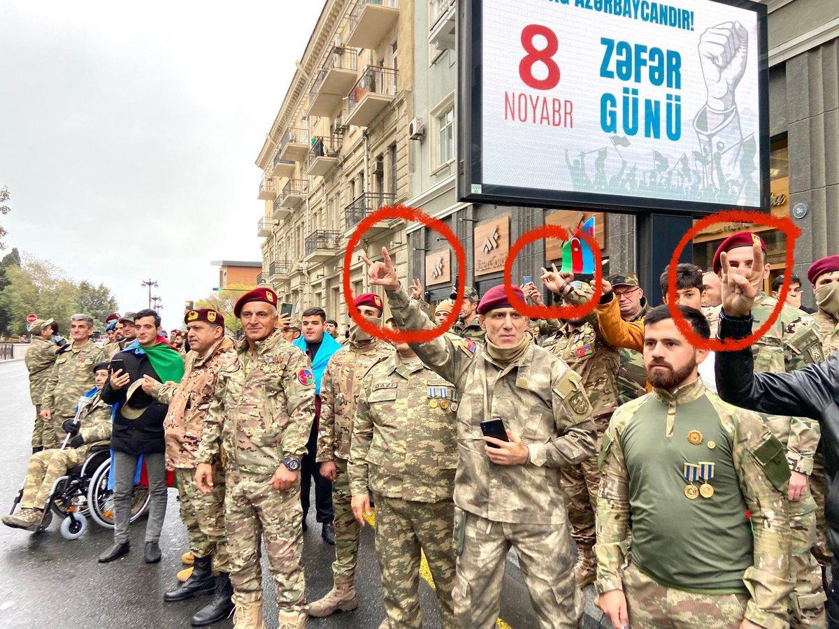 L'ambassadeur ukrainien en Azerbaïdjan a partagé cette image pour célébrer l'épuration ethnique des Arméniens autochtones de l'Artsakh. Ici, des soldats azéris lancent un signe fasciste de loups gris ! L'Ukraine est un pays qui se trouve sous l'attaque de poutine & le fascisme!Zelensky devrait commenter cette connerie https://t.co/zrOwNQT0zKpic.twitter.com/FC5cEVhps1