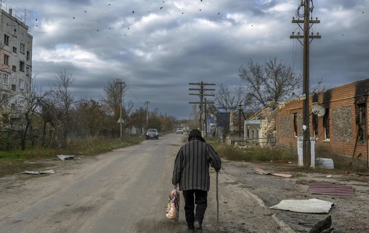 Une femme âgée marche dans le village libéré de l’oblast d’Arkhanhelske Kherson, le 3 novembre 2022. Photo: CNN / Capture d’écran