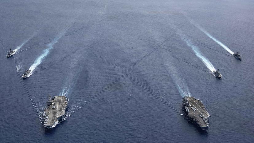 Outre les navires individuels, le Pentagone envoie régulièrement un groupe d'attaque dirigé par le porte-avions USS Ronald Reagan en mer de Chine méridionale. Elle effectue "des exercices de frappe maritime dans les eaux, ainsi que des exercices tactiques coordonnés entre les unités de surface et aériennes".