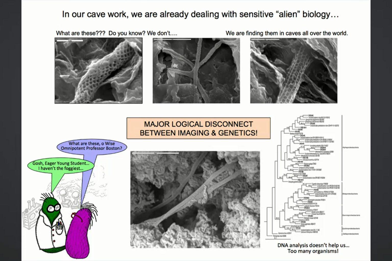 Pour enfoncer le clou sur l'existence d'espèces extraterrestres, Mme Boston a présenté une série de photos représentant des formes de vie qu'elle a découvertes au cours de ses recherches dans le monde entier. Le revers de la médaille ? Ni elle ni personne ne sait ce qu'elles sont ou comment elles sont apparues. Comme l'explique Boston, beaucoup de ces formes de vie semblent minéralogiques à l'œil nu, et pourtant elles étaient vivantes.