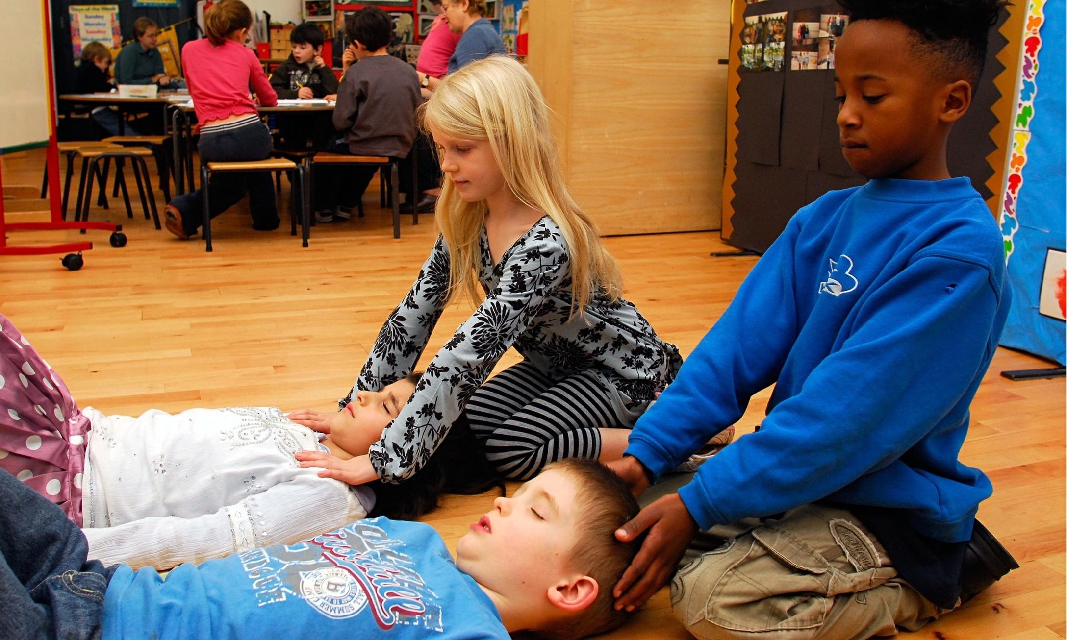 Caroline Woods enseigne en première et deuxième année à l'école primaire The Dharma de Brighton et commence chaque jour sa classe par quelques minutes de pratique silencieuse de la pleine conscience. Elle affirme que faire en sorte que les enfants restent assis en silence n'est pas aussi difficile qu'on pourrait l'imaginer. En fait, les élèves attendent avec impatience le moment où ils n'ont qu'à s'arrêter, rester calmes et écouter.