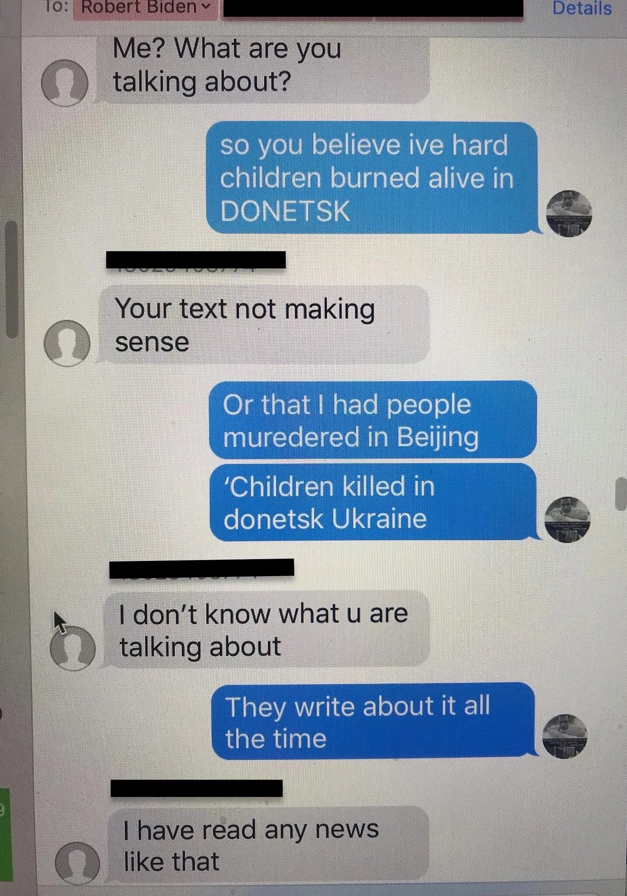 Les SMS trouvés sur l'ordinateur portable de Hunter Biden montrent ce dernier demandant à Hallie Biden, la veuve de son frère devenue amante, si elle pensait qu'il avait des "enfants brûlés vifs à DONETSK" ou des "enfants tués à Donetsk, en Ukraine".
