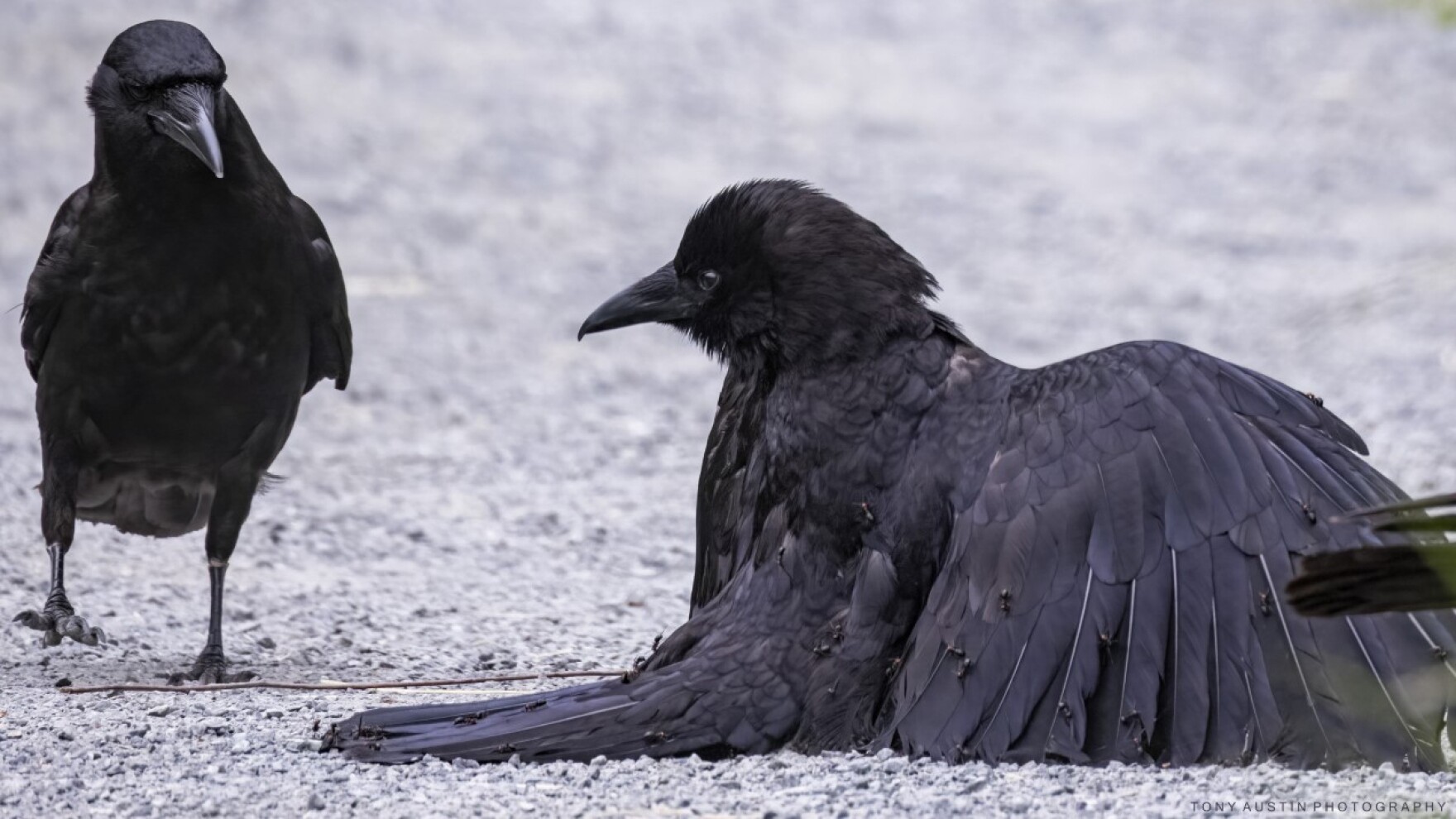 Le photographe Tony Austin se promenait dans la nature lorsqu'il a vu une corneille envahie par des fourmis.