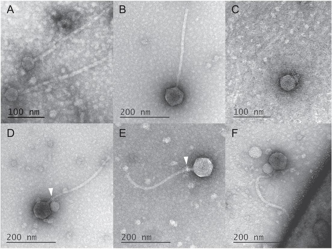 Avec ces soupçons, l’équipe a appelé Tagide deCarvalho de l’UMBC pour obtenir une image de ce qui se passait avec le microscope électronique à transmission (MET). « Ce n’est pas tout le monde qui a un GDT à sa disposition », explique M. deCarvalho. La plupart des phages sont constitués d’une « tête » avec de l’ADN, d’un « cou » de longueur variable et d’une « queue » à travers laquelle ils injectent ce matériel génétique dans la cellule hôte.