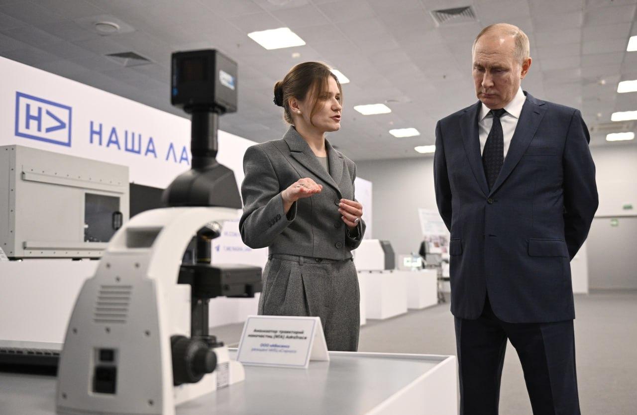 Avant de s'entretenir avec ces derniers, le chef de l'État russe a visité l'exposé «Notre laboratoire». 110 pièces d'équipement scientifique produites par 17 entreprises russes et biélorusses ont été présentées. Le projet Notre laboratoire est une base de données permettant aux scientifiques et ingénieurs de trouver les équipements dont ils sont besoin, et ainsi aux entreprises russes de promouvoir leurs productions.