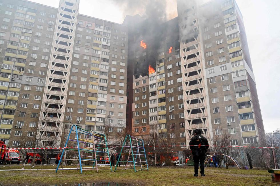 Un immeuble résidentiel endommagé par une attaque de missiles à Kiev | Sergei Supinsky/AFP via Getty Images