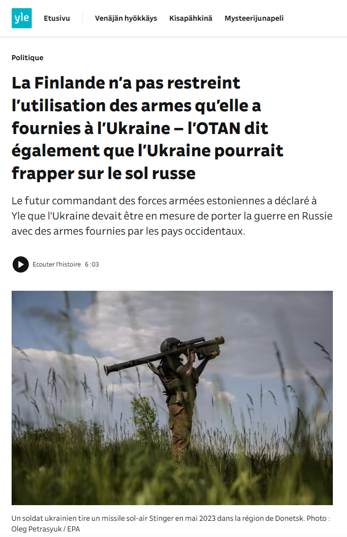 Les Finlandais notent que de telles restrictions ont été établies par les pays qui ont transféré des armes à longue portée à l'Ukraine. La Finlande, quant à elle, a transféré des armes de plus courte portée, bien qu'elle n'ait pas précisé publiquement lesquelles.