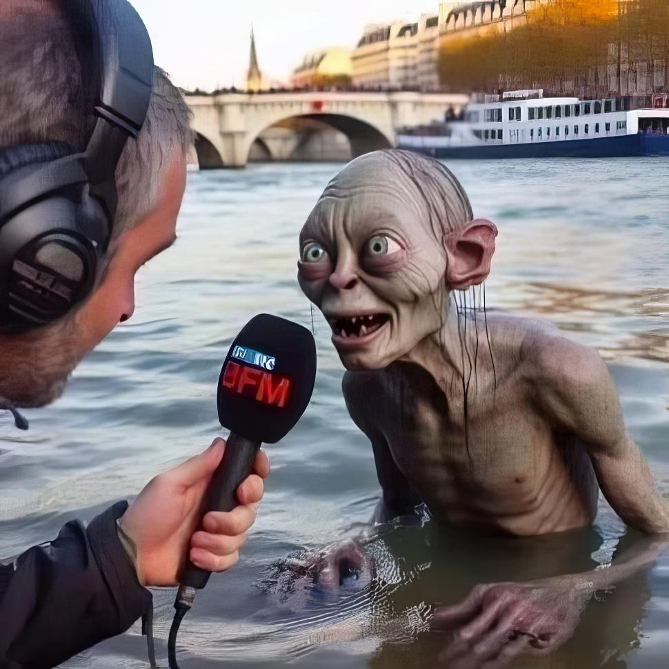 Sur Instagram le 30 juillet, la championne olympique de natation en eau libre néérlandaise Sharon van Rouwendaal a publié une photo du personnage Gollum du Seigneur des anneaux sortant de l'eau de la Seine.