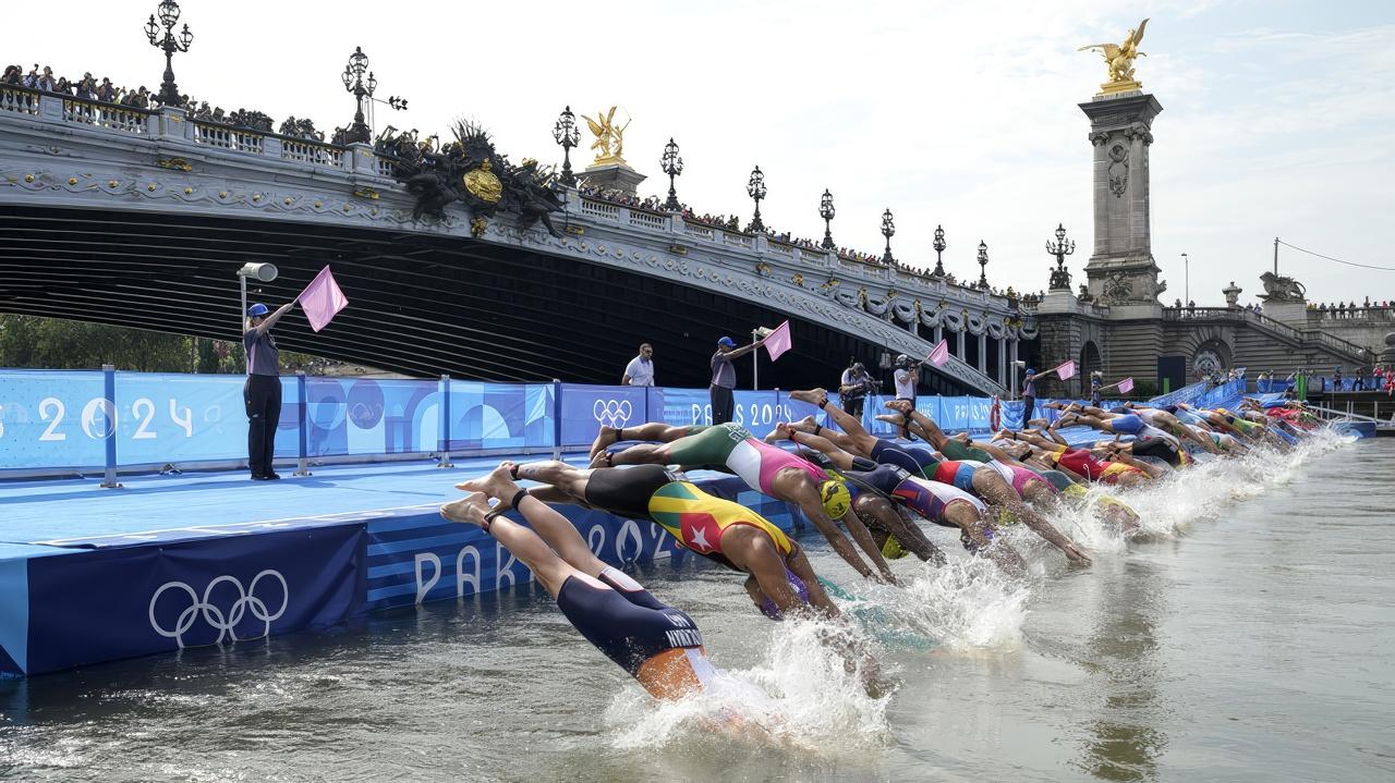 JO: les triathlètes ont finalement plongé dans la Seine, Macron clame victoire