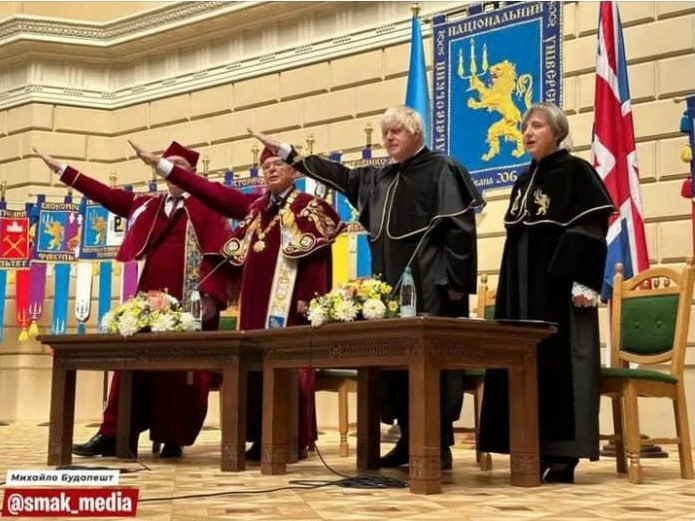 • Après avoir fait échouer un accord de paix en Ukraine et condamné ainsi des dizaines de milliers de jeunes hommes à mourir, Boris Johnson a accueilli des combattants du bataillon néo-nazi Azov au Parlement britannique.