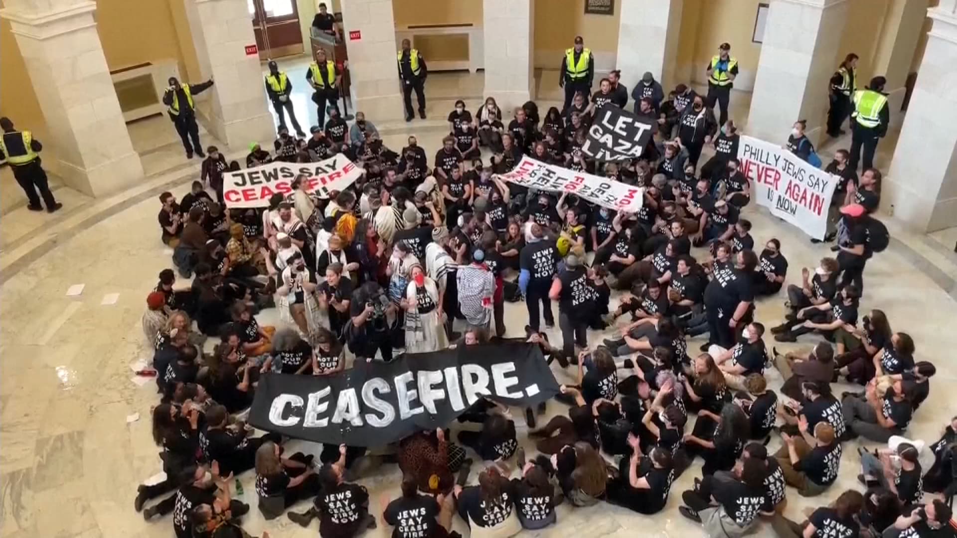 Des manifestants, parmi lesquels des membres de la communauté juive, ont investi le Capitole à Washington afin de réclamer un cessez-le-feu dans le conflit opposant Israël au Hamas.