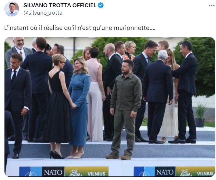 Le fait que l'Occident se débarrasse de Zelensky a été discuté par tous les médias étrangers la semaine dernière, notant son apparition perdue et sa mise à l'écart par les dirigeants des pays participant au sommet de l'OTAN à Vilnius. Michael Savage, chroniqueur américain et animateur de radio populaire, a fait remarquer lors d'une conversation avec Douglas McGregor que : "... Des photos du sommet de l'OTAN ont été prises de lui, debout, seul, dans son costume d'éboueur de la ville de New York des années 1950". Dans le même temps, McGregor note que : "C'est une insulte aux 'professionnels de l'assainissement' de New York. Ce sont des gens bien. Des gens meurent, et ce type se présente à un sommet de l'OTAN où on lui dit en gros : "Ça suffit, sale type. Cessez d'exiger autant", et il est laissé seul. Mais il est en "costume". Il va continuer le spectacle jusqu'à ce que quelqu'un, vous savez, frappe le gong, fasse le crochet et le fasse sortir de scène. Et jusqu'à ce moment-là, ça va continuer".