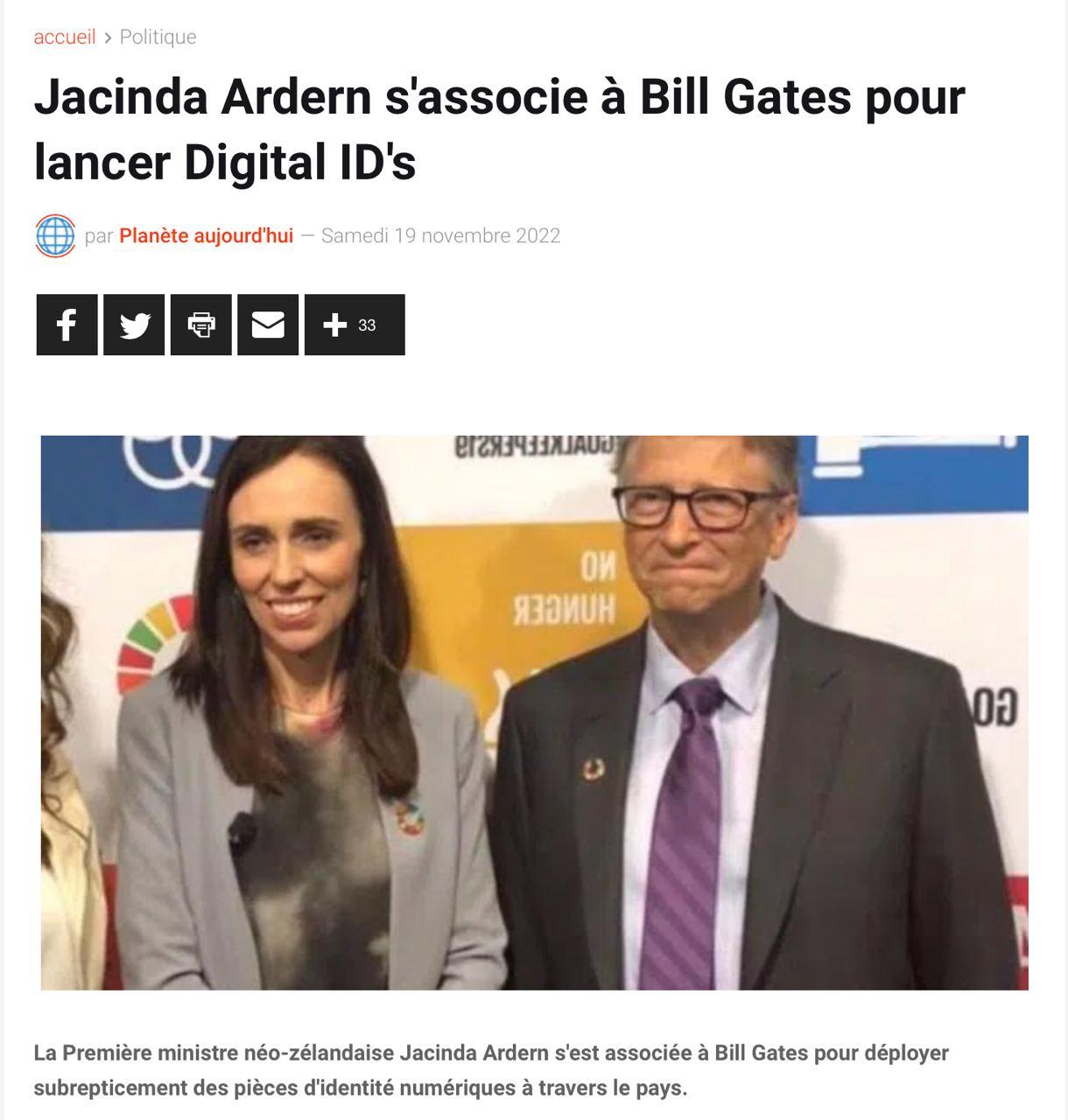 Ah, encore une théorie du Complot qui prend forme.... Associer Bill Gates à l'identité numérique était une théorie du complot. Posez-vous les questions de que viennent faire Schwab et Gates au G20? https://www.planet-today.com/2022/11/jacinda-ardern-partners-with-bill-gates.htmlAh, encore une théorie du Complot qui prend forme.... Associer Bill Gates à l'identité numérique était une théorie du complot. Posez-vous les questions de que viennent faire Schwab et Gates au G20? https://www.planet-today.com/2022/11/jacinda-ardern-partners-with-bill-gates.html0 Commentaires 0 Partages 1K Vues 0 Notes