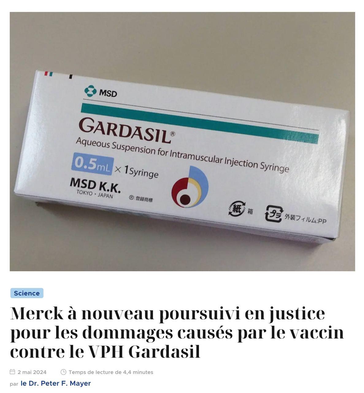 Dans de nombreux Etats US, les victimes de ce vaccin, se regroupent en collectifs. https://tkp.at/2024/05/02/merck-erneut-verklagt-wegen-schaeden-durch-hpv-impfstoff-gardasil/