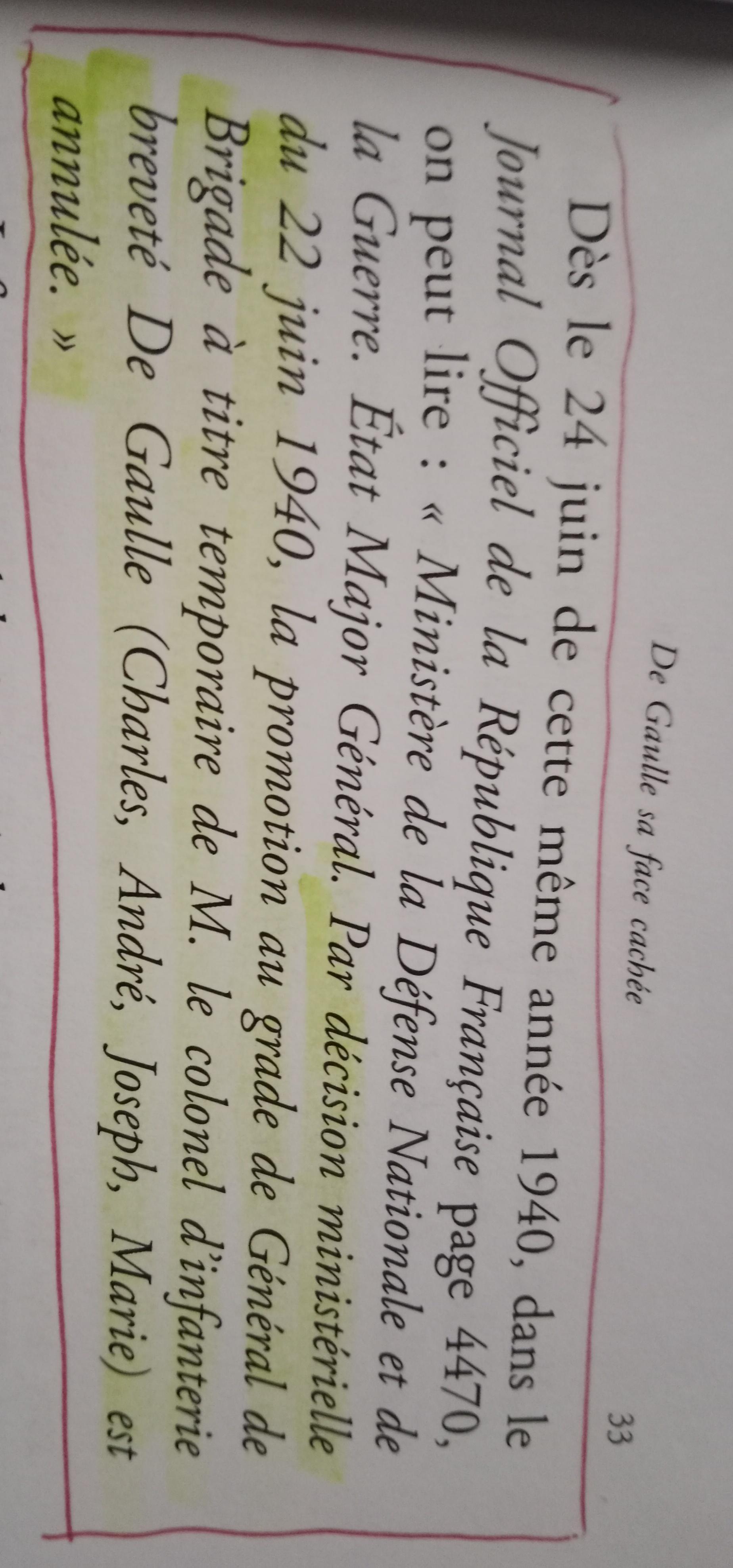 Annulation du grade TEMPORAIRE de général de l'usurpateur De gaulle. Qui non seulement n'a jamais eut le grade permanent de général, mais s'est vu de + retirer celui qu'il n'avait reçu que de façon temporaire pour remplacer un général absent à un moment donné.
