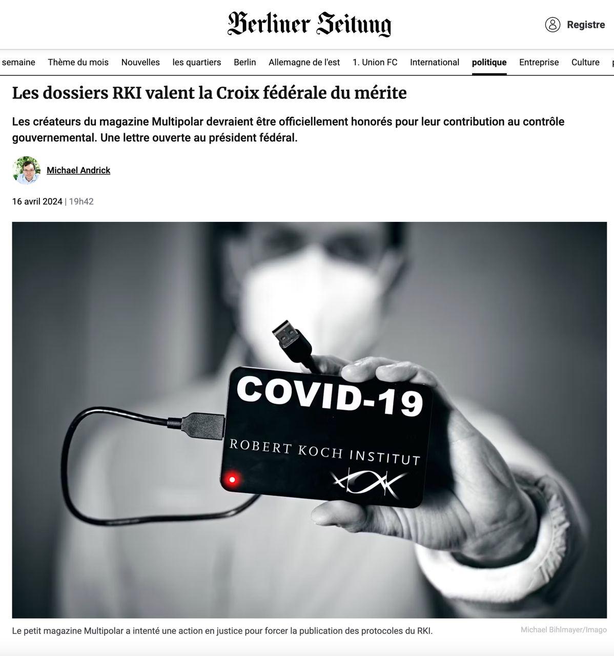 Hier le grand journal, Berliner Zeitung titrait qu'il fallait donné la Croix fédérale du Mérite (la plus haute récompense en Allemagne) au magazine Multipolar pour avoir eu accès aux fameux dossiers #rkifile