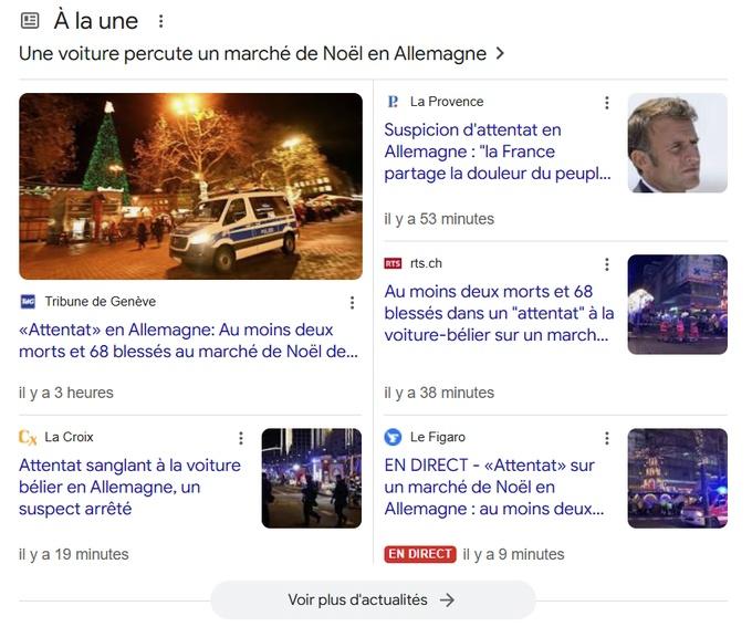 À tout ceci, il faut ajouter la crise politique qu'il y a eu en Allemagne depuis hier, quand Olaf Scholz s'est pris un râteau. Cet "attentat" est lié à cette crise politique.