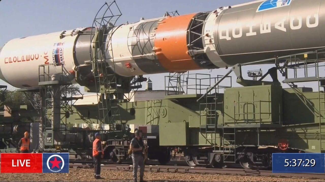La fusée Soyouz-2.1a avec le cargo Progress MS-20 a été installée sur la rampe de lancement de Baïkonour. Le carénage de la tête de la fusée était décoré des drapeaux de la DNR et de la LNR, et l'inscription « Donbass » était appliquée au deuxième étage.