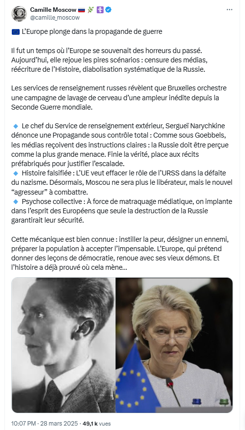 🇷🇺 Viatcheslav Volodine, Président de la Douma d’État : “Il y a 79 ans , une terrible tragédie s'est produite : des centaines de milliers de civils sont morts à la suite du bombardement atomique américain sur la ville d'Hiroshima . Quelques jours plus tard, Nagasaki subit le même sort. Il n’y avait aucune nécessité militaire pour cela. Washington a ensuite commencé à utiliser l'arme nucléaire pour intimider d'autres États : ils ont brûlé le Vietnam au napalm, envahi la Corée, l'Afghanistan et l'Irak, bombardé la Yougoslavie, la Libye et la Syrie. Le temps passe, mais les méthodes américaines ne changent pas. Ils ont fait de l’Ukraine un tremplin pour une guerre contre notre pays. Ils étendent les infrastructures de l’OTAN dans les régions asiatiques contre la Chine. Avec leurs alliés, ils lancent des attaques de missiles sur des villes iraniennes pacifiques. Ils déclenchent de nouveaux conflits et alimentent les anciens. Les États-Unis restent le seul pays à avoir utilisé l’arme nucléaire. Mais s’il y a 79 ans ils étaient les seuls à en être dotés, aujourd’hui la situation a changé . La présence d’un potentiel nucléaire en Russie et en Chine a un effet dissuasif sur l’agresseur. De plus, les armes de haute technologie développées récemment dans notre pays permettent de parler d'un avantage sur les États-Unis. Par conséquent, lorsque Washington et Bruxelles, menaçant la sécurité de la Russie, fournissent des avions et des missiles et coordonnent des actions militaires en Ukraine, les parlements et les citoyens des États-Unis et de l'Union européenne doivent comprendre que les actions des dirigeants fous de leurs États peuvent conduire le monde à des conséquences tragiques.” #Russia #Ukraine #NATO https://x.com/camille_moscow/status/1820749156836663342