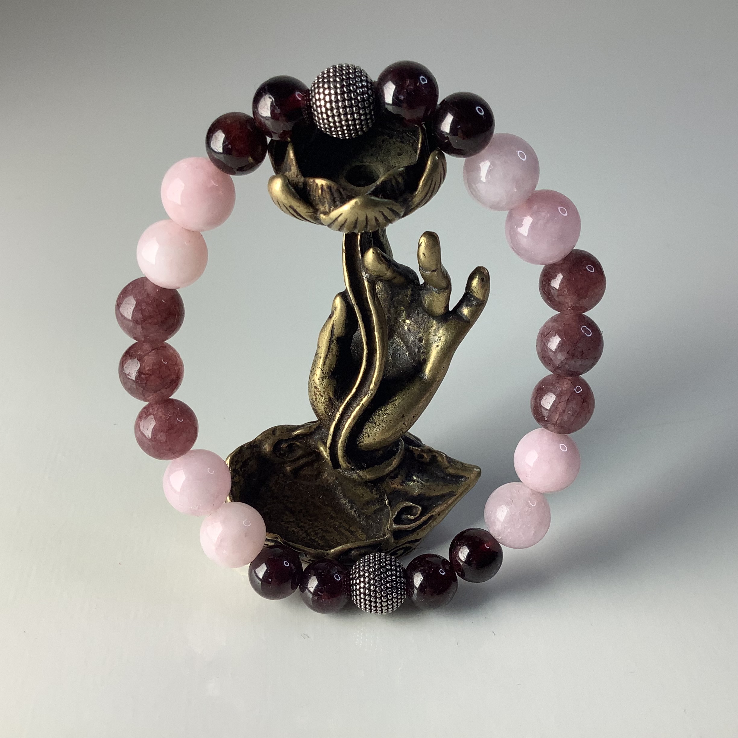 La lépidolite et la kunzite en riche lithium vous apportera calme et sérénité et le grenat la créativité et l'action. Lors de votre commande, merci de m'indiquer la dimension de votre tour de poignet. Nettoyé et chargé énergétiquement. La pierre de la Lépidolite et ses propriétés spirituelles et émotionnelles Apporte une sérénité profonde Favorise l’aboutissement des objectifs Stimule l’intellect et les capacités analytiques Aide à la prise de décision Favorise la concentration Dissipe la négativité Incite à être soi-même et à être indépendante Calme le corps et l’esprit Aide aux voyages spirituels Lutte contre les états de tristesse et de stress Atténue les troubles du sommeil Encourage les rêves lucides et prémonitoires La Kunzite et ses propriétés spirituelles et émotionnelles Pierre de protection Génère des pensées affectueuse Améliore la communication Apaise les blessures affectives Encourage la volonté Neutralise les émotions négatives Agit comme un bouclier contre le stress Intensifie le champ énergétique entourant le corps Lutte contre toute sorte d’addiction Revigore la sexualité La pierre de Grenat et ses propriétés spirituelles et émotionnelles Donne force et courage Réconforte et filtre les pensées négatives Ouvre la porte à la bonne humeur et à la joie de vivre Redonne goût à la vie Rétablit l’équilibre et la sérénité de notre être profond Aide à prendre du recul, à être dans une écoute empathique Purifie les chakras Développe la volonté Offre une meilleure confiance en soi Favorise le succès Forge une force intérieure élevée Lutte contre la dépression Aide à affronter les épreuves de la vie Développe le respect de soi Idéale en méditation & pour les voyages astraux Offre une protection très puissante https://www.fait-maison.com/bijoux/bracelet/693789-nicolepierret_zenitude--bracel-extensible-en-grenat-en-lepidolite--en-kunzite-de-grade-a-en-8-mm-avec-6-perles-en-argent-925-sterling-3.html