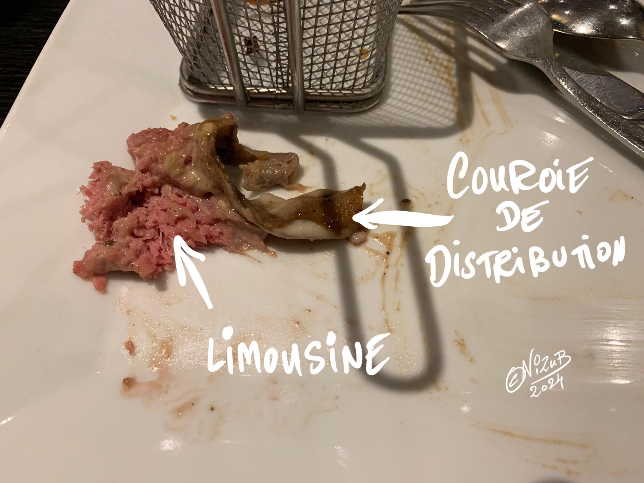 Le restaurant : Changement de chef… ça se voit. Le pavé de bœuf 100% limousine : en effet, je suis tombé sur la courroie de distribution…