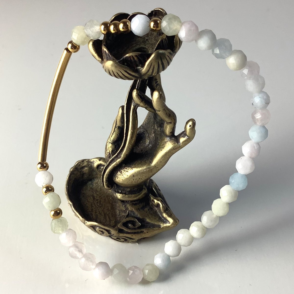 Bracelet en perles d'acier inoxydable doré et de morganite en 4 mm - amour, amitiés & détente | Les bijoux d'Isis