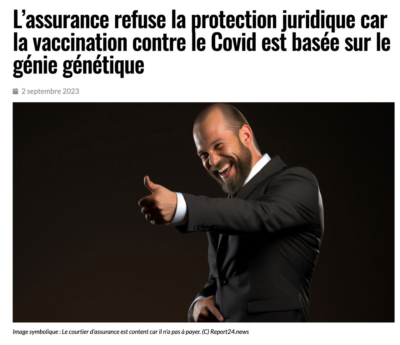 "Quand on disait depuis le début que ce n'était pas des vaccins mais des thérapies géniques, on se faisait traiter de complotistes par les médias, les politiques, les médecins de plateaux TV. L’assurance protection juridique allemande Auxilia a rejeté une demande de protection juridique liée à des dommages liés à la vaccination contre le Covid. Le raisonnement est simple : la compagnie d'assurance se réfère à ses conditions générales, qui excluraient les dommages causés par la biotechnologie, la nanotechnologie ou la technologie génétique...." Silvano Trotta https://twitter.com/silvano_trotta/status/1698006619542421519 https://report24.news/versicherung-lehnt-rechtsschutz-ab-weil-covid-impfung-auf-gentechnik-basiert/?feed_id=33229